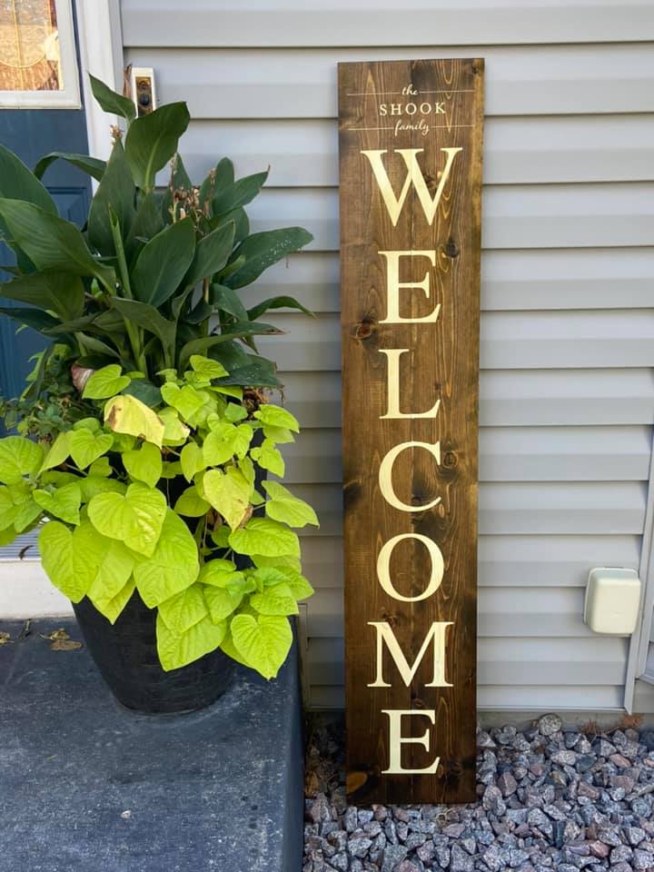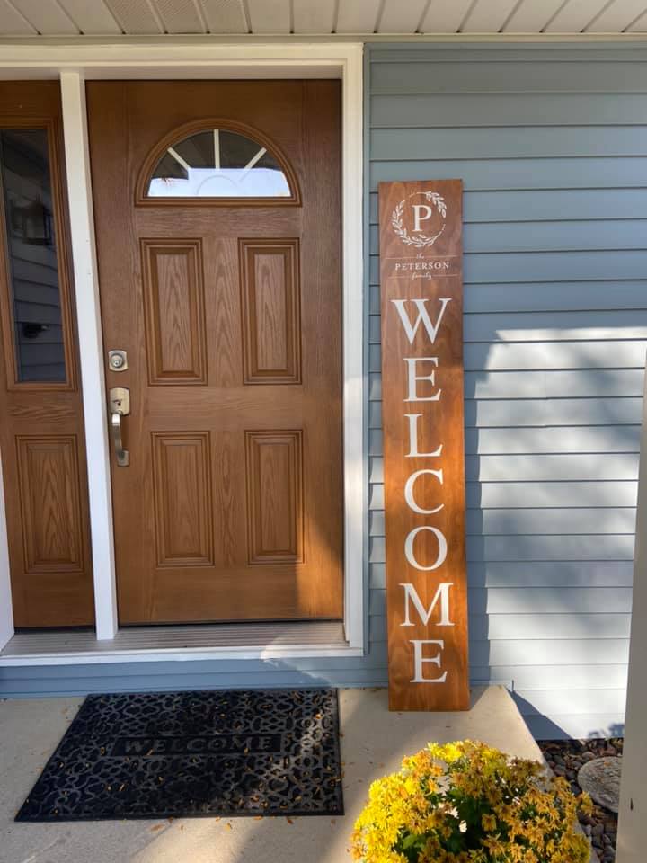 Welcome your clients to their new home and thank them for their business with a personalized custom made leaner porch sign. It's the perfect closing gift and realtors are loving our small business flexibility and our small hand delivery service fee! New home owners love to come home after closing to see this warm welcoming gift at their front door. We'll even adorn the back of the sign with your contact information for tax purposes and attach a "thank you" card on your behalf so they know exactly where to direct their gratitude.